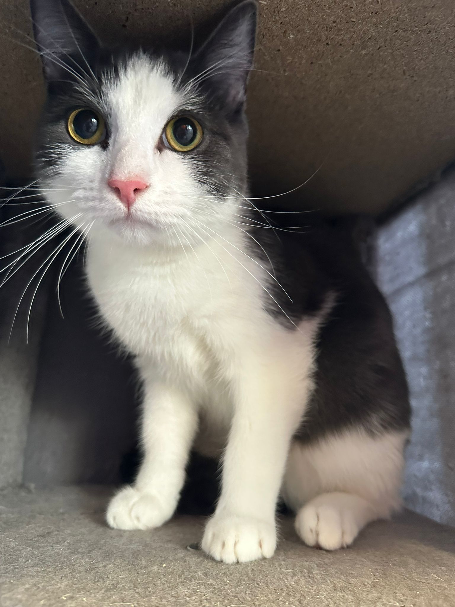 This handsome little man is looking for his forever home and would love a feline playmate too. He is a sweet affectionate boy who is coming out of his shell but will definitely flourish in a home where he will have fun and company.